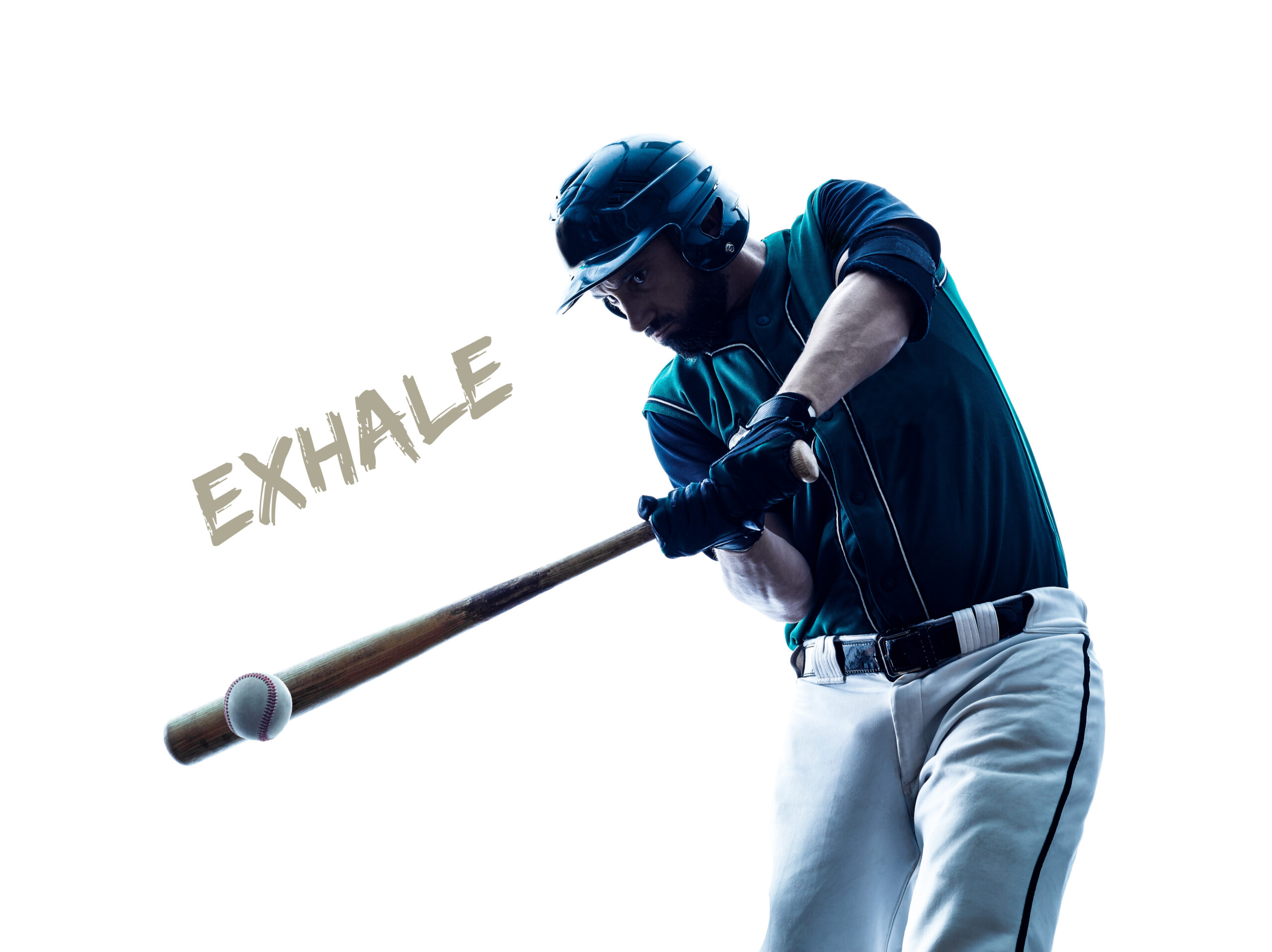 These same rules apply in the batter’s box. Inhale during the load and stride phases, and use the power exhale to amplify the swing and follow-through phases. This technique allows you to keep your ribs down, engage your core, and decelerate rotation more efficiently for a powerful stroke.